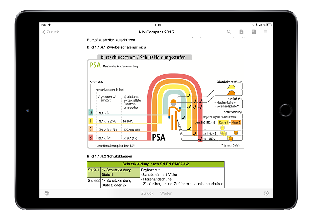 Electrosuisse beauftragte uns mit der Entwicklung und dem Design einer Applikation, welche dem Nutzer einen mobilen Zugang zur NIN Compact, einem Standardregelwerk der Strombranche ermöglicht. Zusätzlich soll die App die Verarbeitung von Formularen und Checklisten erleichtern.